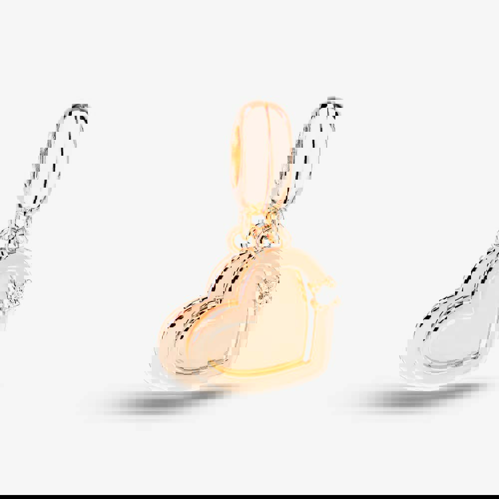 Bring a romantic accent to your collection with the Rosa Lea Double Hearts Dangle Charm, a dangle charm crafted in rose gold plated sterling silver. Formed from two separate heart pieces, it can be worn together for a layered look or styled individually to suit your bracelet or bangle.