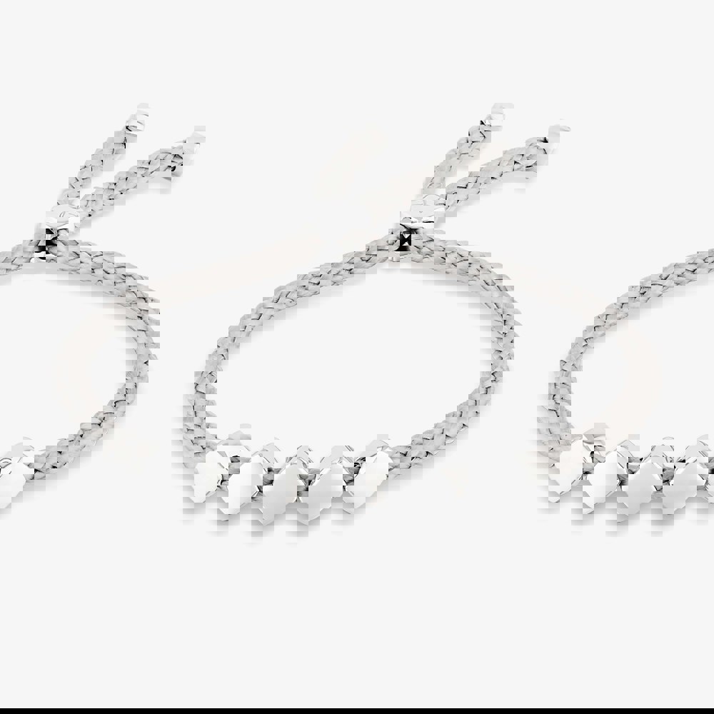 The Rosa Lea Grey Cord sterling silver Cube Toggle Bracelet AM-2THB034007 is created from grey cord and features five sterling silver cubes. It is completed with an adjustable toggle fastening.