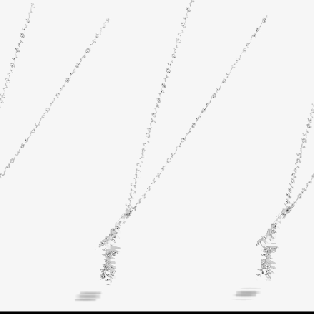 A simple & elegant sterling silver necklace crafted with a drop leaves design set with 1mm cubic zirconia stones completed with an 18 inch trace chain with lobster clasp fastening. Pair with the matching sterling silver & cubic zirconia leaves twist ring to complete the look.