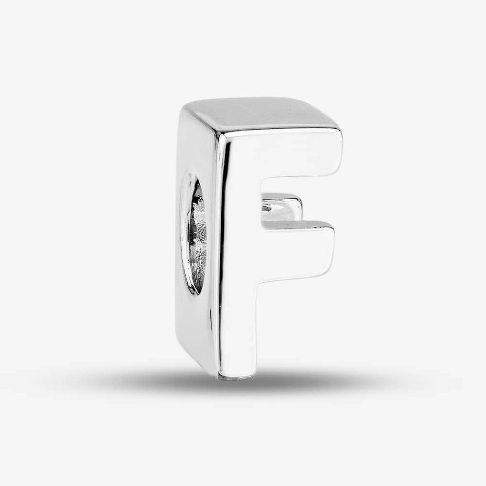 Personalise a favourite bracelet with the Rosa Lea Letter F Charm, a sterling silver bead charm with a clean, polished look. Finished in silver, it brings a simple, graphic accent to a charm collection and works well as a meaningful initial for everyday wear.