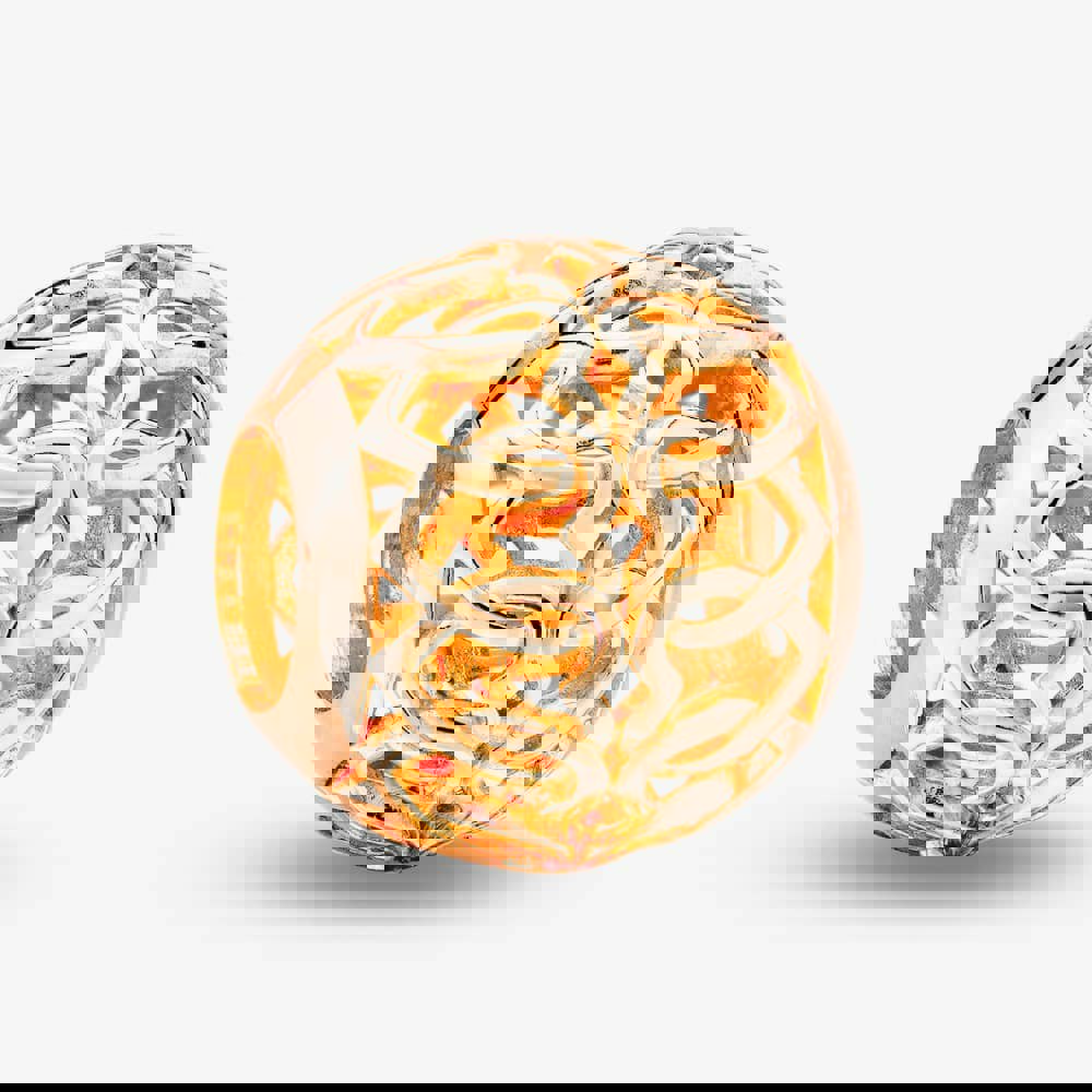 Detailed with two rows of interlinked love hearts, the Rosa Lea Linked Hearts Charm is a bead charm with an openwork, round profile. Crafted in sterling silver and finished in a rose gold colour, it brings a warm-toned accent and a romantic motif to charm jewellery.