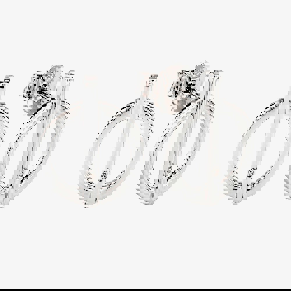 The Matching Halves design showcases a sturdy circular bezel perfectly bisected to a stone-set bar, creating twin matching apertures to either side. The emblems of these earrings are graced with a sturdy stem at the top meeting point of bezel and bar to ensure a stable and comfortable fit for all day wear.