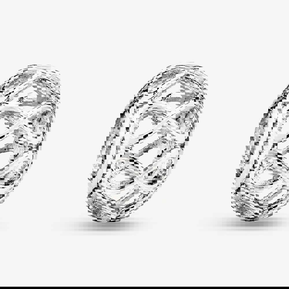 Rosa Lea openwork round shaped bead charm made from sterling silver with infinity symbol detailing.