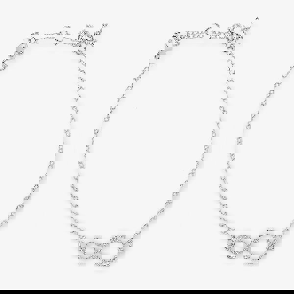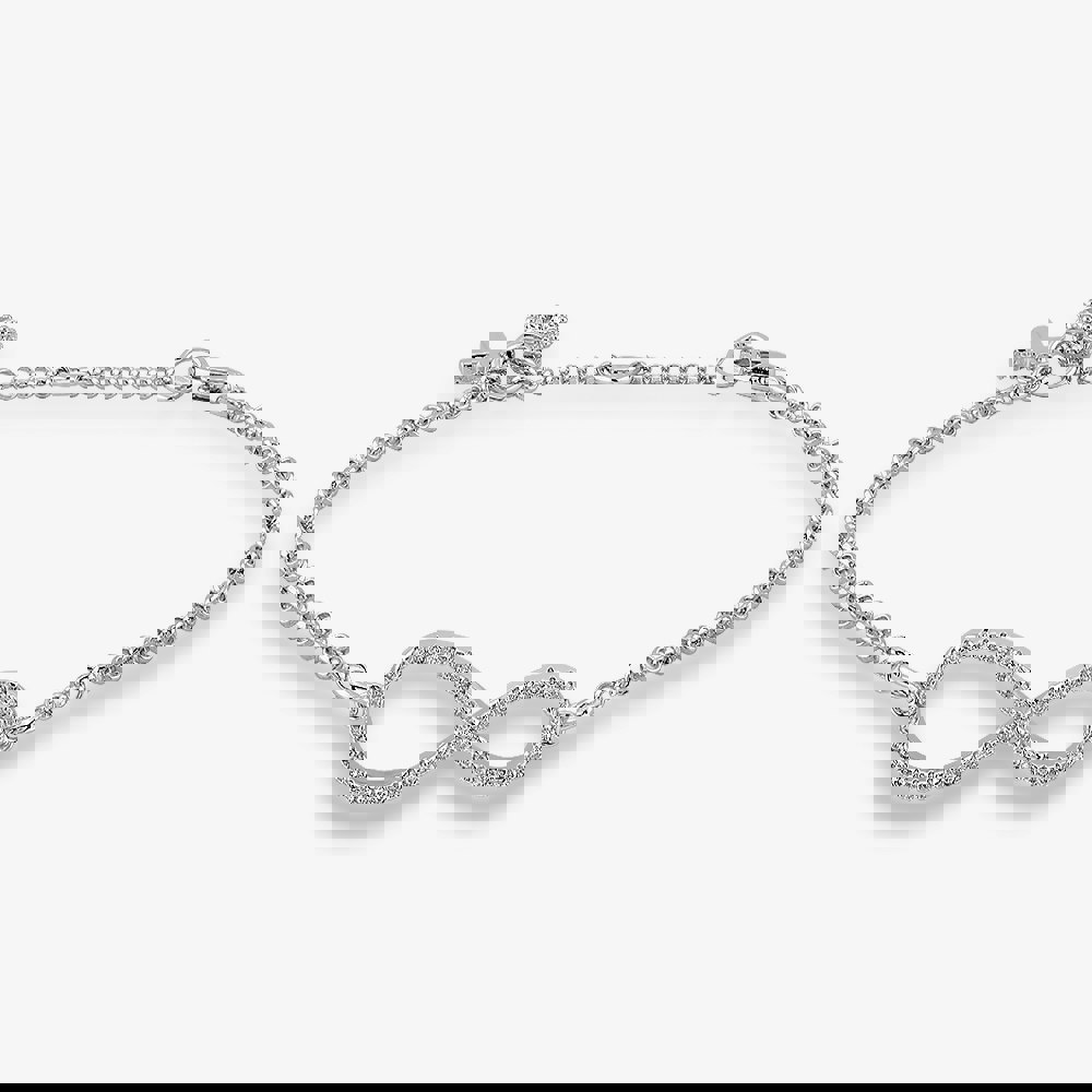 Show that your devotion is forever with this infinity themed bracelet. An asymmetric infinity symbol takes centre stage on your wrist with glittering cubic zirconia pavé. The fine belcher chain leads up to an extender chain, decorated with a small pavé cross and a larger stone for an extra adornment.