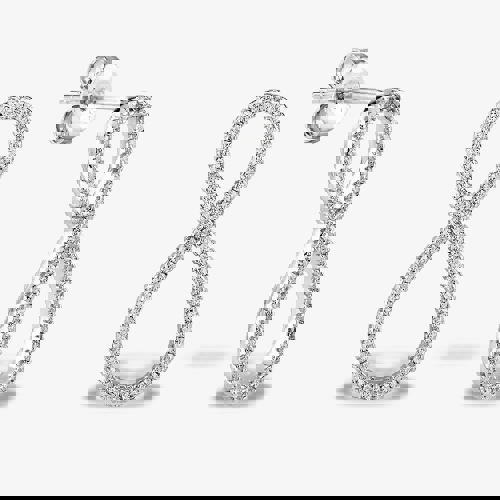 Show that your devotion is forever with these infinity themed droppers. An asymmetric figure-eight is the focal point of each piece, encrusted with sparkling pavé Cubic Zirconia for a truly elegant, showstopping finish.