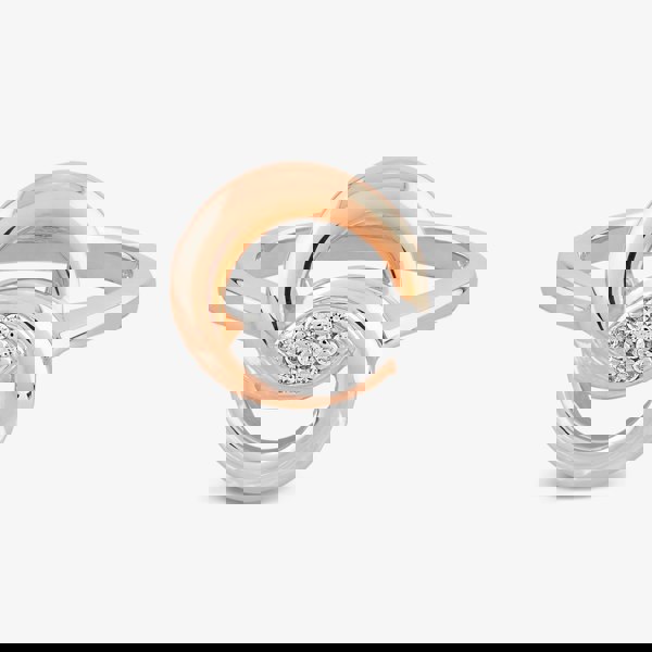 Linked for eternity like a newly married couple, this highly polished ring holds the promise of a single shared destiny. A pavé cluster sits at the heart of the bond, sparkling with all of the love in the world.