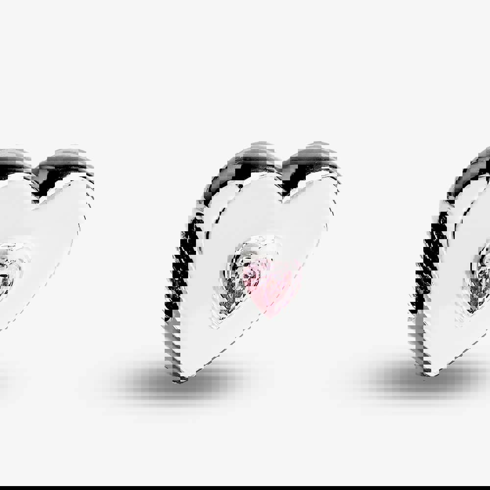 Rosa Lea love heart shaped bead charm made from sterling silver with a heart shaped pink cubic zirconia set in its centre.