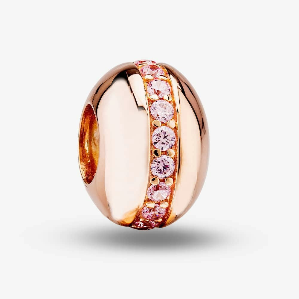 A polished accent for a charm collection, the Rosa Lea Pink Line Charm is a round charm crafted in sterling silver with a rose gold plated finish. A line of pink cubic zirconia stones runs through the centre, bringing a soft pop of colour and a refined sparkle.