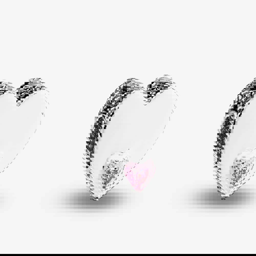 Bring a soft pop of colour to your collection with the Rosa Lea Pink Offset Heart Charm, a sterling silver bead charm with a romantic heart-led silhouette. Hearts are hollowed into the sides to create delicate cut-out detail, while a heart-shaped pink cubic zirconia sits at the bottom for a polished finish.