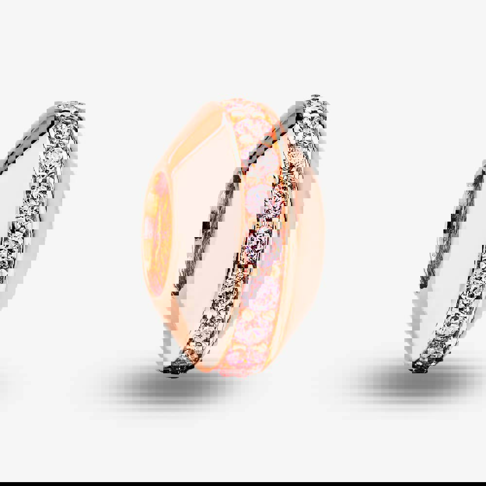 A polished accent with a soft blush finish, the Rosa Lea Pink Thin Line Charm brings a refined touch to any charm collection. Crafted in sterling silver and plated in rose gold, it is shaped with a smooth dome profile and detailed with a neat line of cubic zirconia stones through the centre for subtle sparkle.