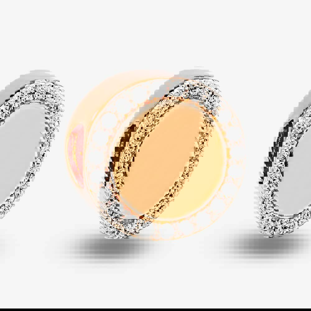 A polished accent with a personal finish, the Rosa Lea Round Charm is crafted in rose gold plated sterling silver and edged with white cubic zirconia. A plain centre keeps the design clean and balanced, offering space for engraving while the stone-set border adds a refined sparkle.