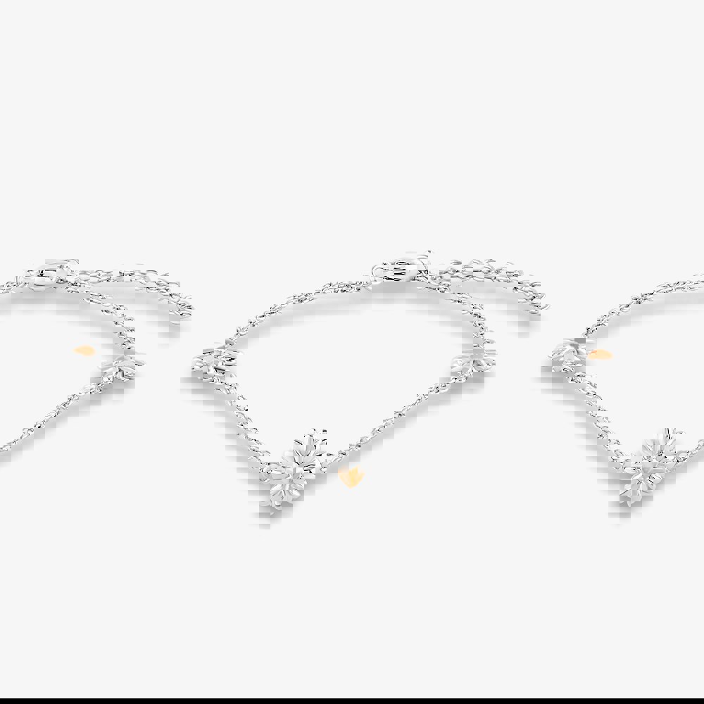 Rosa Lea Ladies Triple Daisy Bracelet AM-2THB028307. This elegant bracelet is crafted from sterling silver with an adjustable chain measuring 16cm - 20cm. The bracelet features 3 sterling silver daisies each with a rose gold-plated heart-shaped centre, creating this simple yet beautiful bracelet.