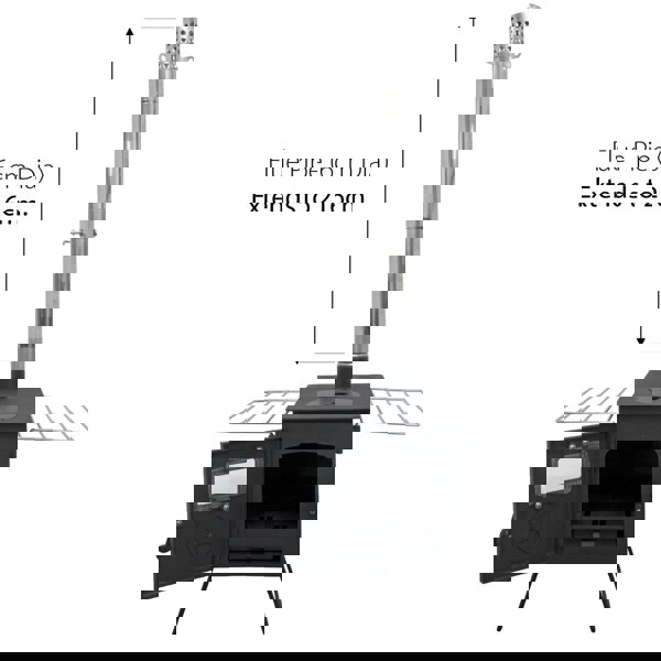 A built in door air intake allows for controlled combustion, helping you regulate airflow and manage heat output efficiently. Once you are ready to move on, the folding legs make transportation simple, while the flue sections can be disassembled and stored neatly inside the stove body for compact packing.