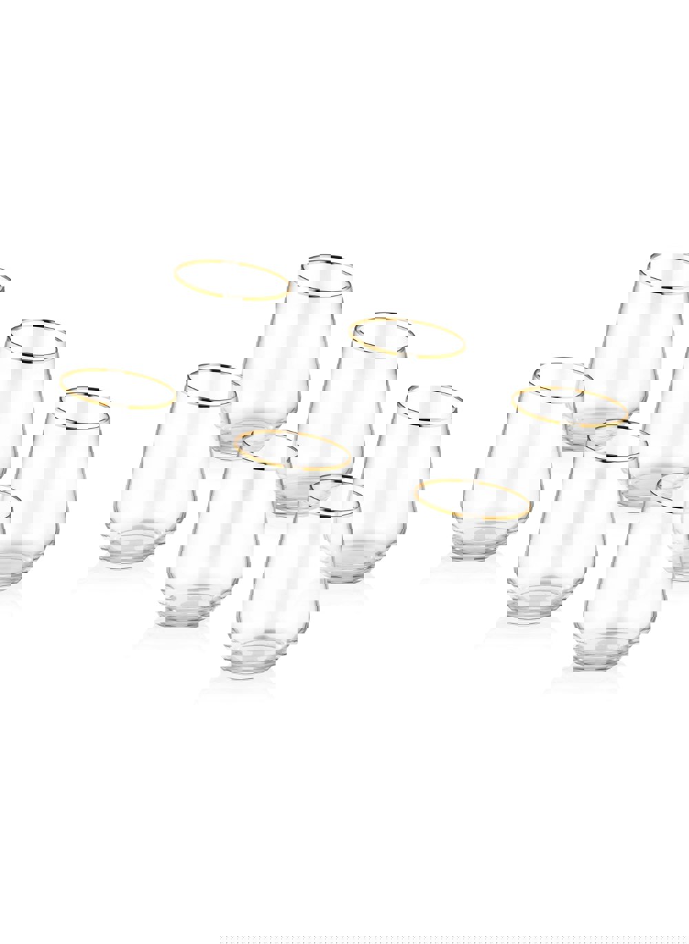 Slanted tumblers with gold rim for stunning drinks presentation.