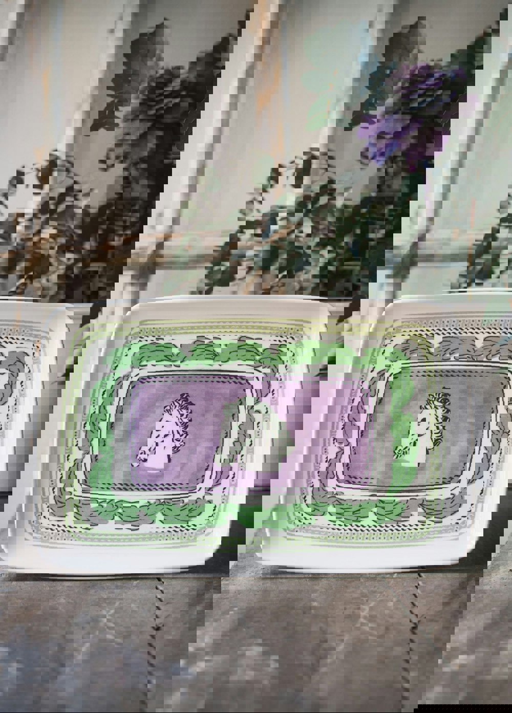 Add a touch of Provençal charm to your table with the Provence Rectangular Serving Platter. Measuring 35 x 16 cm, this elegant piece is perfect for presenting cheeses, canapés, pastries, or antipasti with effortless French sophistication. The soft green and purple hues echo the lavender fields and lush landscapes of the Côtes de Provence, bringing a calming, natural beauty to your presentation.