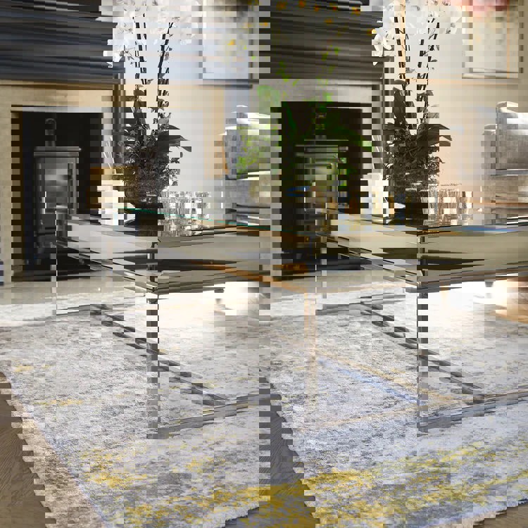 Like a magic carpet the pattern printed on these opulent rugs changes appearance from different angles as the light hits the surface
