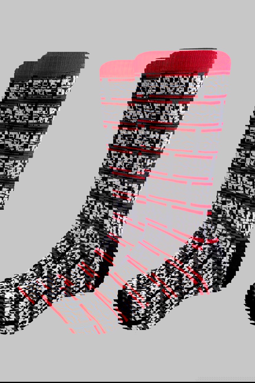 Official licensed Run DMC Unisex Ankle Socks featuring the 'All Over Logo' design motif. These high quality ankle socks are available in a black colourway. These premium quality, colourful, all-over pattern cotton rich woven socks are guaranteed to stand out in the crowd. UK adult shoe sizes approx. 7 - 11 (EUR Shoe size 40 - 45 and US Men's Shoe Size 8 - 12).