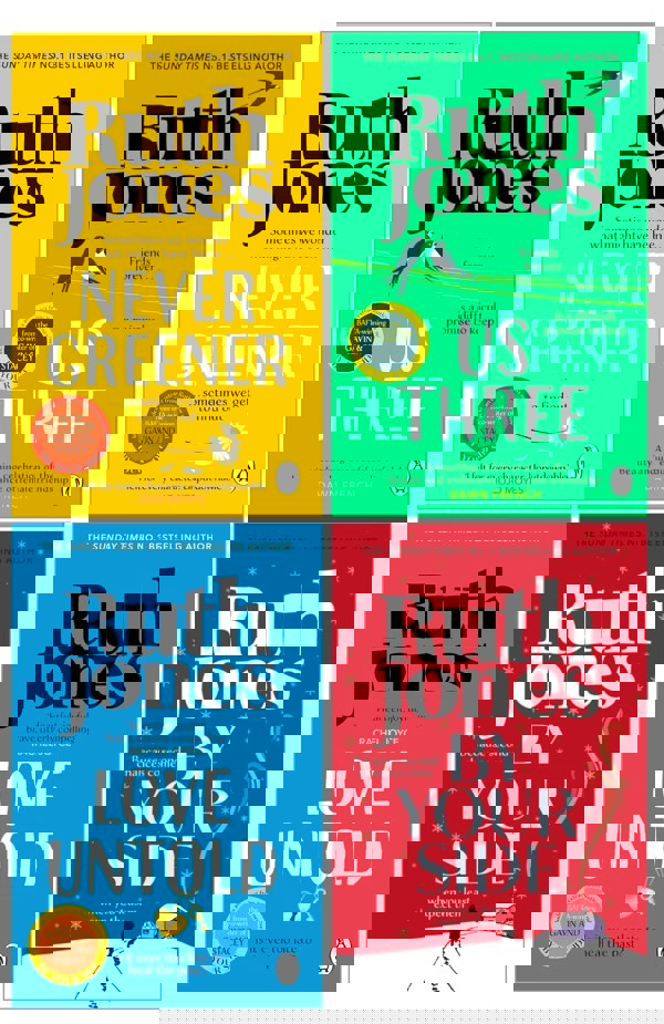 This four-book collection brings together a selection of novels by Ruth Jones in mixed formats. The set includes Love Untold, Us Three, Never Greener and By Your Side, with three paperbacks and one hardback.