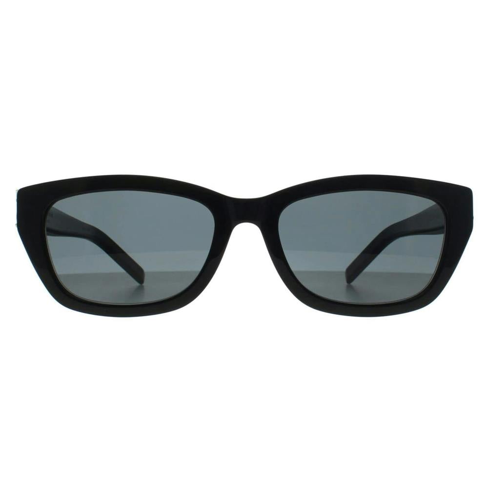 Clean lines and a pared-back finish define the Saint Laurent SL M153 001 sunglasses. Crafted with precise detailing, this Shiny Black frame is balanced by Grey lenses for a refined, understated look that works easily from everyday wear to travel. Polished accents along the temples add a subtle point of interest, keeping the silhouette sharp and considered without distracting from the overall design.