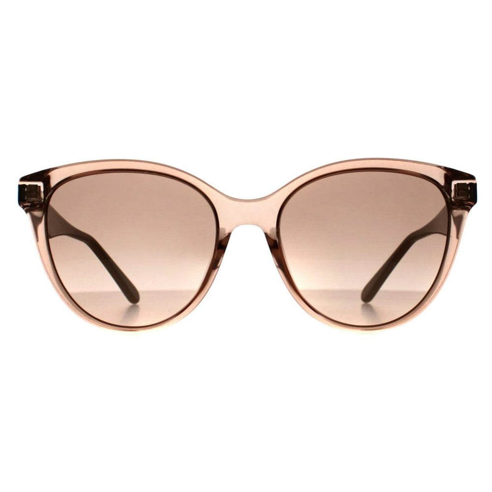 Salvatore Ferragamo Sunglasses SF1073S 278 Crystal Sand Rose Grey are a stylish cat eye frame crafted from lightweight acetate. The iconic Salvatore Ferragamo logo is delicately engraved on the temples, showcasing the brand's signature touch.