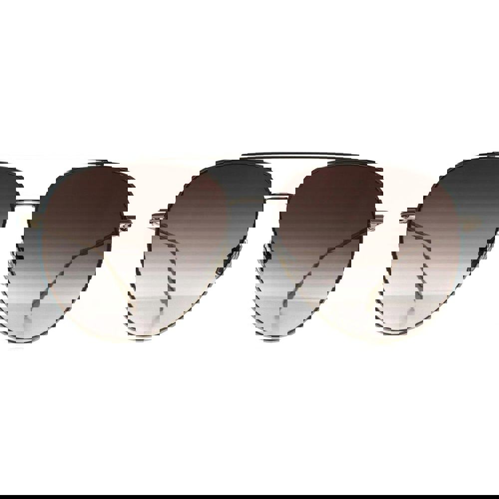 Salvatore Ferragamo Sunglasses SF308S 703 Light Gold Brown Gradient feature a classic aviator shape with a refined metal frame and sleek double bridge. Designed with minimalist detailing and subtle Ferragamo branding at the temples, they offer full UV protection and a lightweight, comfortable fit – ideal for a timeless, polished look.