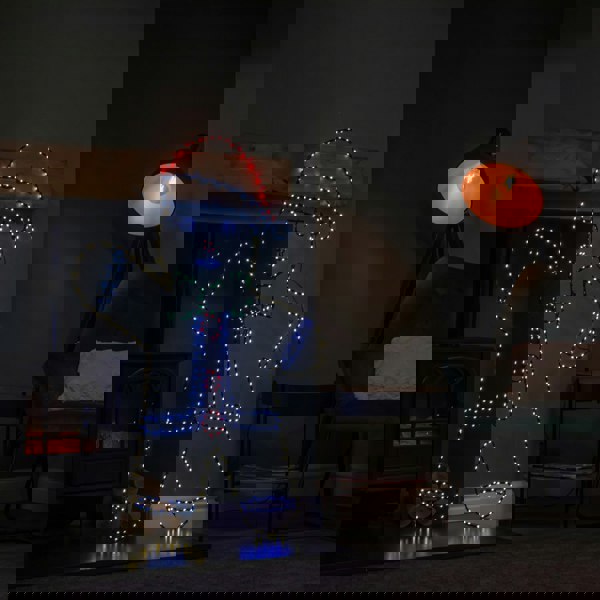 Standing at an impressive 1. 2 metres tall and 90cm wide, this delightful Gingerbread Man decoration is sure to become a standout feature in your seasonal display. This festive figure is brought to life with 456 multi-coloured LEDs, offering a vivid combination of static and flashing effects to create a fun and festive twinkling glow. The lights are expertly woven around a durable black metal frame. Mains powered and includes a generous 5 metre power cable, allowing for flexible positioning both indoors and in sheltered outdoor areas.