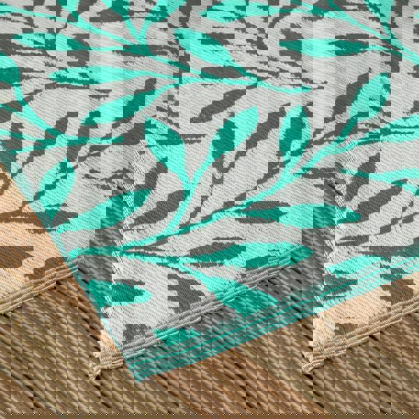 The elegant green leaves pattern captures the essence of nature, combining shades of green for a sophisticated and lively look. This green floral outdoor rug complements garden furniture, alfresco dining areas, or indoor seating arrangements, bringing a refreshing botanical feel to any environment.