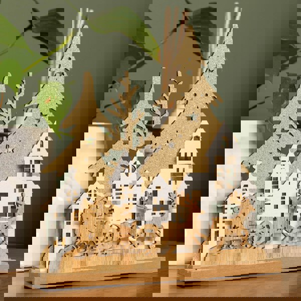 Made from wood, this freestanding decoration is illuminated by warm white LEDs to bring an enchanting warm glow