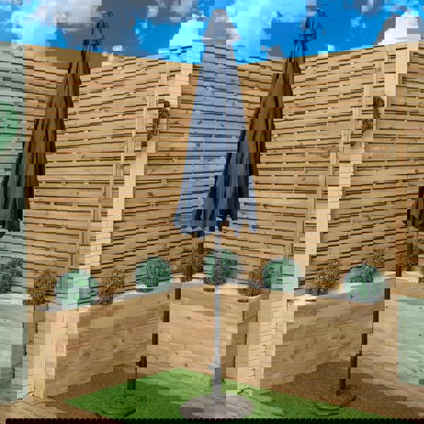 Featuring a 2. 7m Blue canopy, this parasol is designed to provide maximum protection and shade. Made from high quality polyester, the canopy shields from harmful UV rays, offering a cool, shaded retreat while keeping you safe from sun exposure. With a crank mechanism, effortlessly open and close the parasol with a smooth, easy-to-use crank handle, ensuring a seamless experience whilst providing added convenience and reducing any strain.