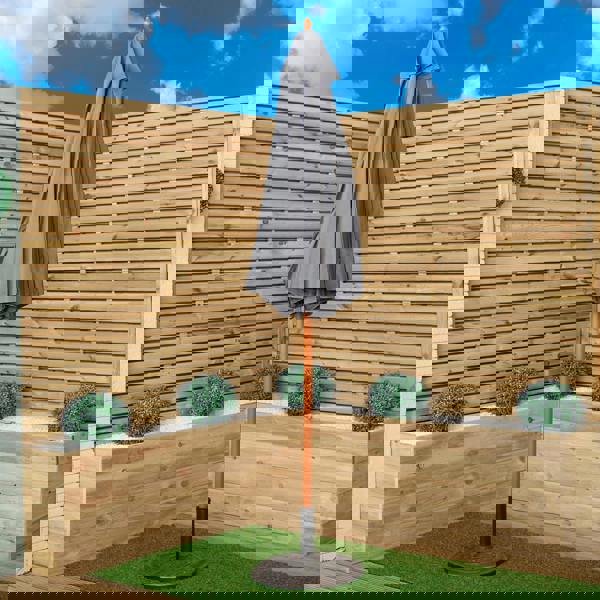 The 2. 7m garden parasol features a high quality grey polyester canopy made from durable 180g fabric, providing effective UV protection to help shield you from the sun during warm summer days. The wide 2. 7 metre canopy creates ample shade, making it ideal for garden tables, seating areas or relaxing outdoors.
