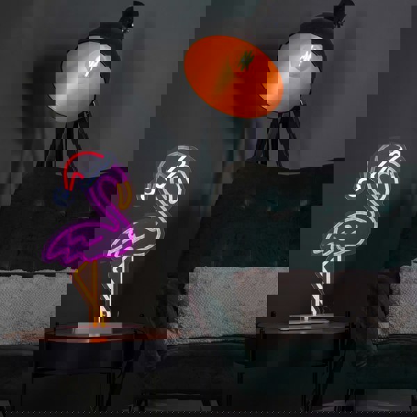43cm Light up Neon Effect Flamingo with Santa Hat on Base with Multi-Coloured LEDs