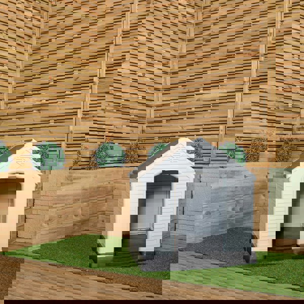 Constructed from robust plastic that’s easy to clean, this kennel is a low maintenance solution for outdoor pet housing. Its practical size makes it a great fit for gardens, patios, or even indoor utility spaces. With internal dimensions of 74cm (H) x 69cm (L) x 72cm (D), there’s plenty of room for your dog to sit, turn, and rest comfortably. The wide entrance (32cm W x 51cm H) makes it easy for dogs to get in and out, while the neutral grey and black colourway complements modern garden aesthetics.