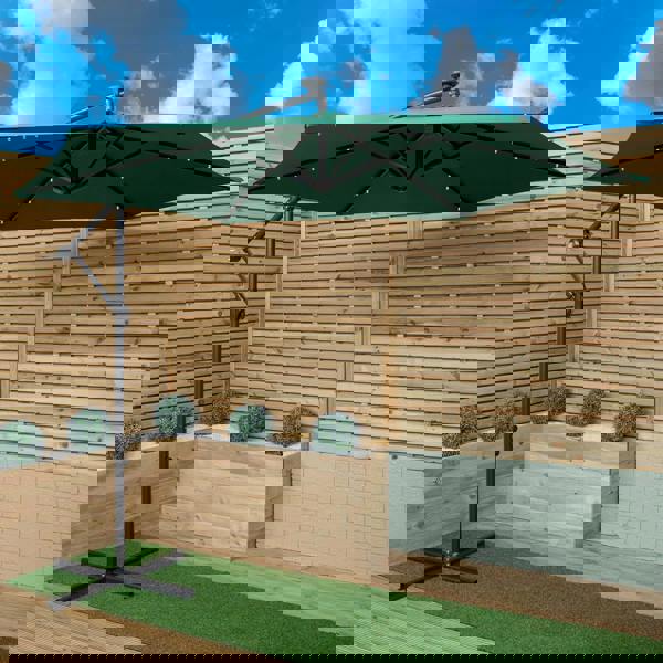 Bring a considered finish to outdoor dining with the Samuel Alexander round glass-top garden dining set, complete with four reclining chairs and a green banana parasol with integrated lighting. Designed for relaxed meals and easy-going drinks on the patio, terrace or in the garden, it offers comfortable seating for up to 4 people and a practical way to enjoy summer shade.
