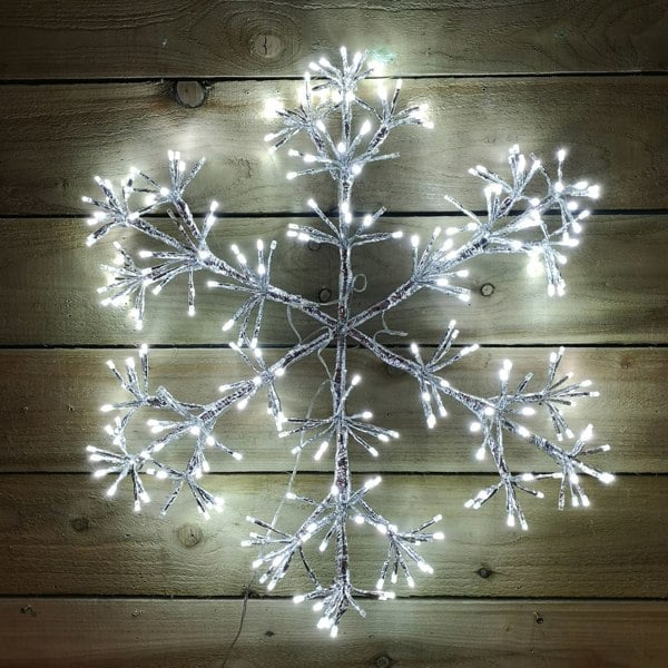 60cm Silver Starburst Snowflake Wall/Window Decoration with 300 White LEDs