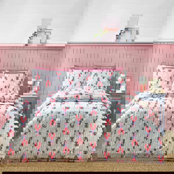 Serve a bold bedroom look with this cute lobster-print bedding that brings quirky coastal vibes. Featuring red or blue stripes decked out in lobsters in bows ready to flip when you’re feeling a vibe switch.