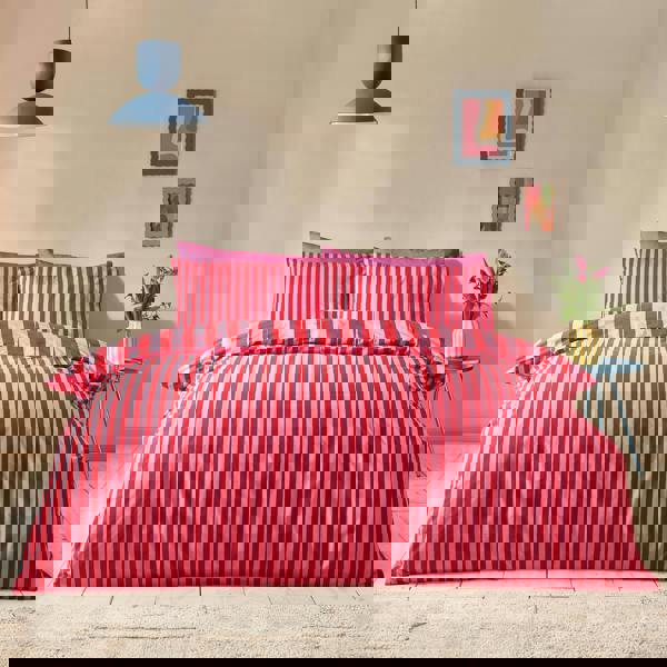 Get that bedroom glow up Hun! It’s time to make those all-important duvet days a little bit more glam, with our Stripe Tease duvet set. This design will leave you totally obsessed with bedtime. We know you’re living for the alternate stripes. Created from a soft cotton and polyester, blended for everyday use.