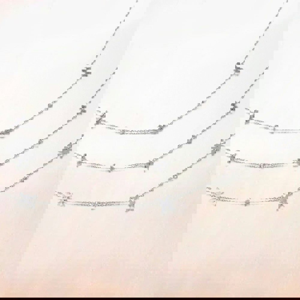 This stunning Aquarius Necklace in Silver is crafted from stainless steel and features dazzling CZ feature stones on an 18-inch chain.