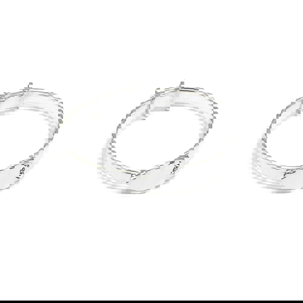This elegant Baby Engraved Clear Stone Cross Bangle in Silver is crafted from high-quality Sterling Silver. Featuring a dainty cross design accented with a sparkling cubic zirconia stone, this bangle brings a touch of grace and shine to every little wrist. On the reverse, a petite plate with a clear CZ stone allows for personalized engraving of up to 8 characters, making it a unique keepsake. Thoughtfully designed, this bangle is a perfect gift for christenings, birthdays, or any special moment to cherish forever.