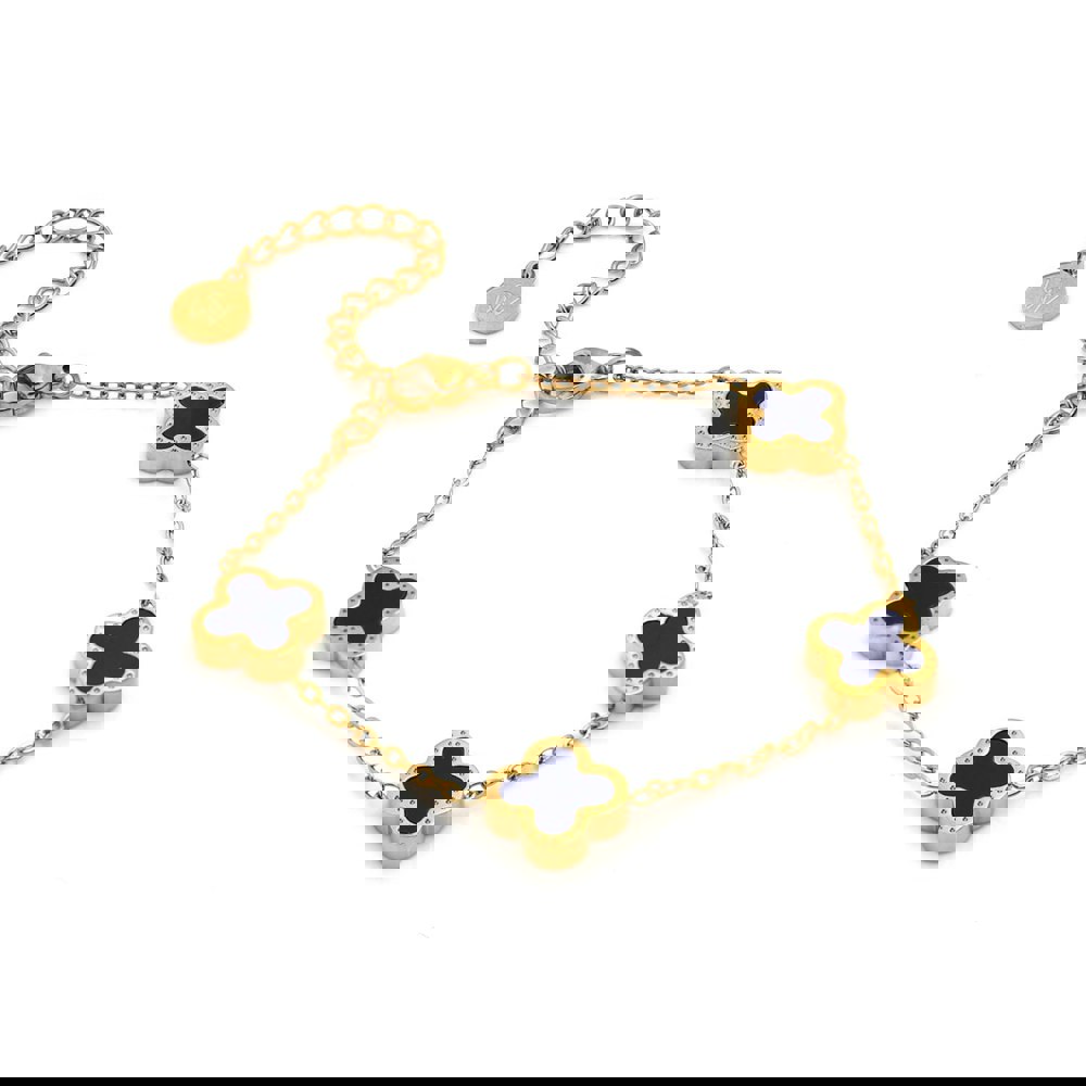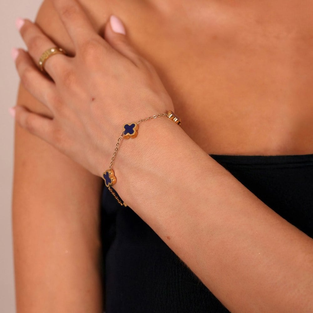Elevate your everyday elegance with the Blue Clover Chain Bracelet in Yellow Gold. Crafted from stainless steel, this bracelet is waterproof, anti-tarnish, and anti-fade, ensuring long-lasting shine and durability you can rely on.