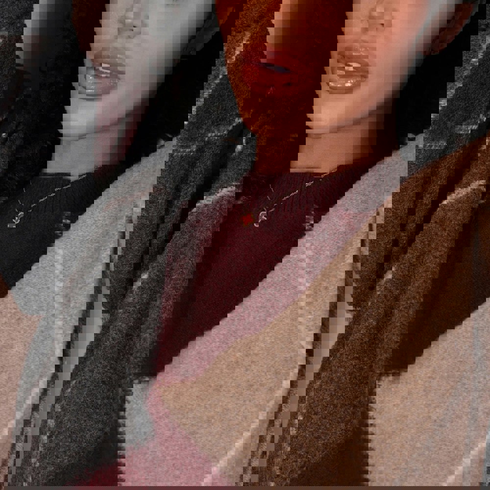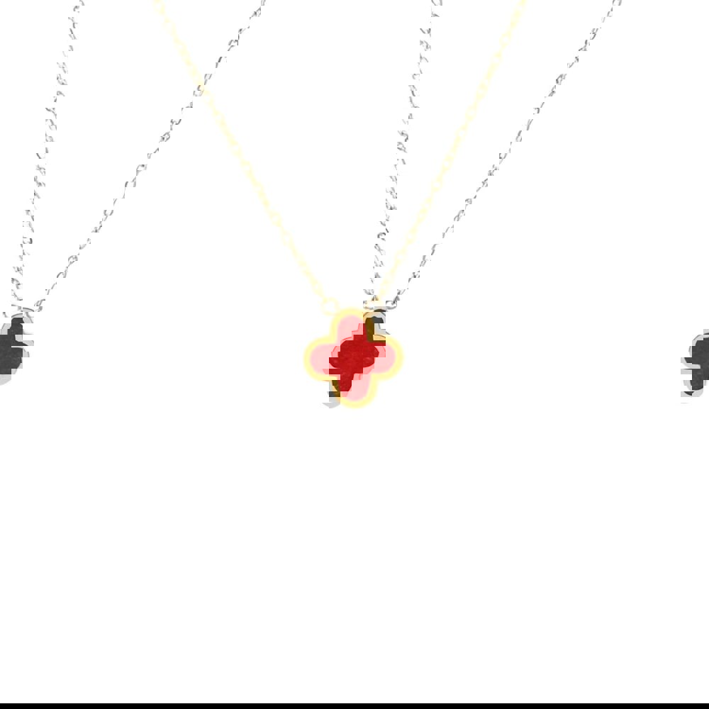 The delicate clover pendant features a cherry red crystal at its centre, beautifully contrasted against the warm yellow gold finish. With a 16-inch chain and 2-inch extension, this necklace offers a versatile fit, perfect for layering with other pieces or wearing alone as a statement accessory.