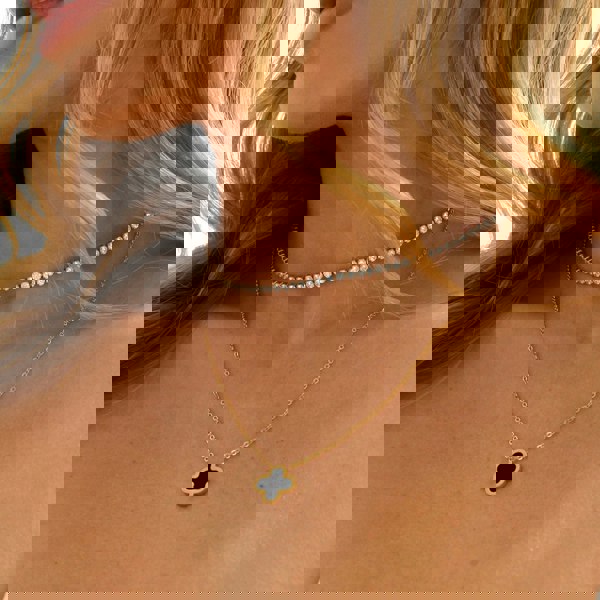 This Clover Necklace features a beautiful clover shaped pendant which represents good luck.