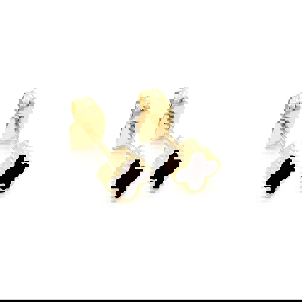 Bring a touch of vibrant elegance to any outfit with the Graphite Crystal Clover Earrings in Yellow Gold. Crafted from durable stainless steel and plated in radiant yellow gold, these stud earrings are waterproof, anti-tarnish, and anti-fade, ensuring lasting shine and wear.