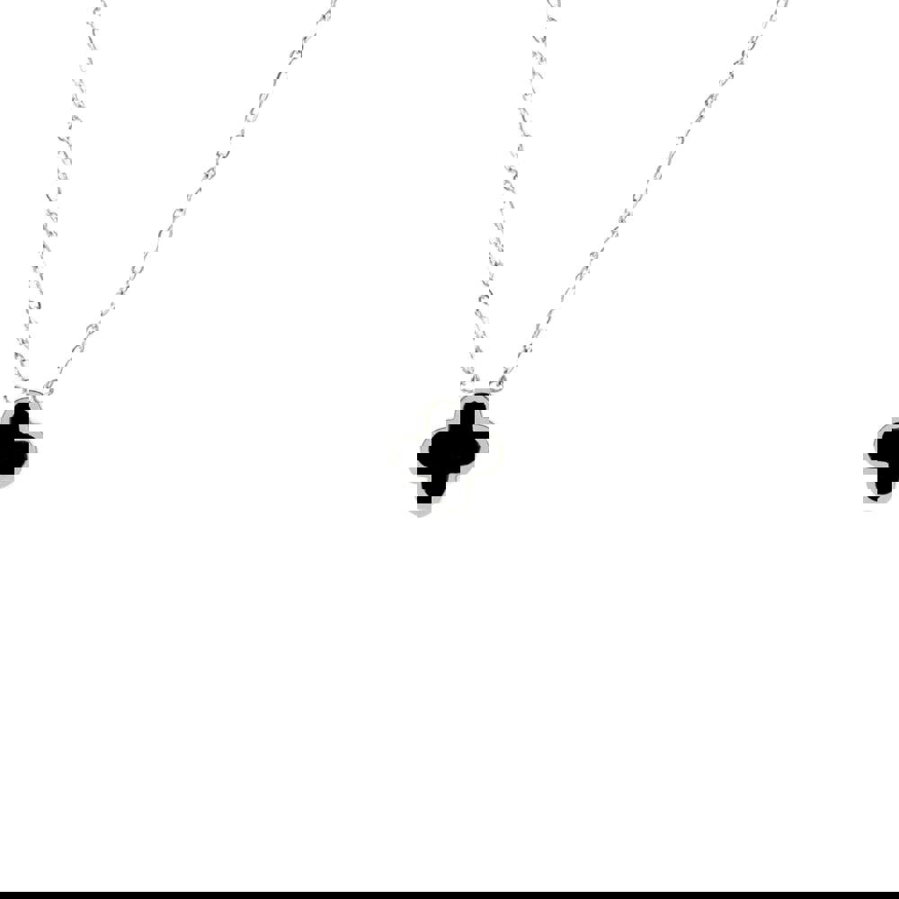 Add a touch of charm and elegance with the Graphite Crystal Clover Necklace in Silver. Crafted from durable stainless steel, this necklace is waterproof, anti-tarnish, and anti-fade, ensuring lasting shine and wear.