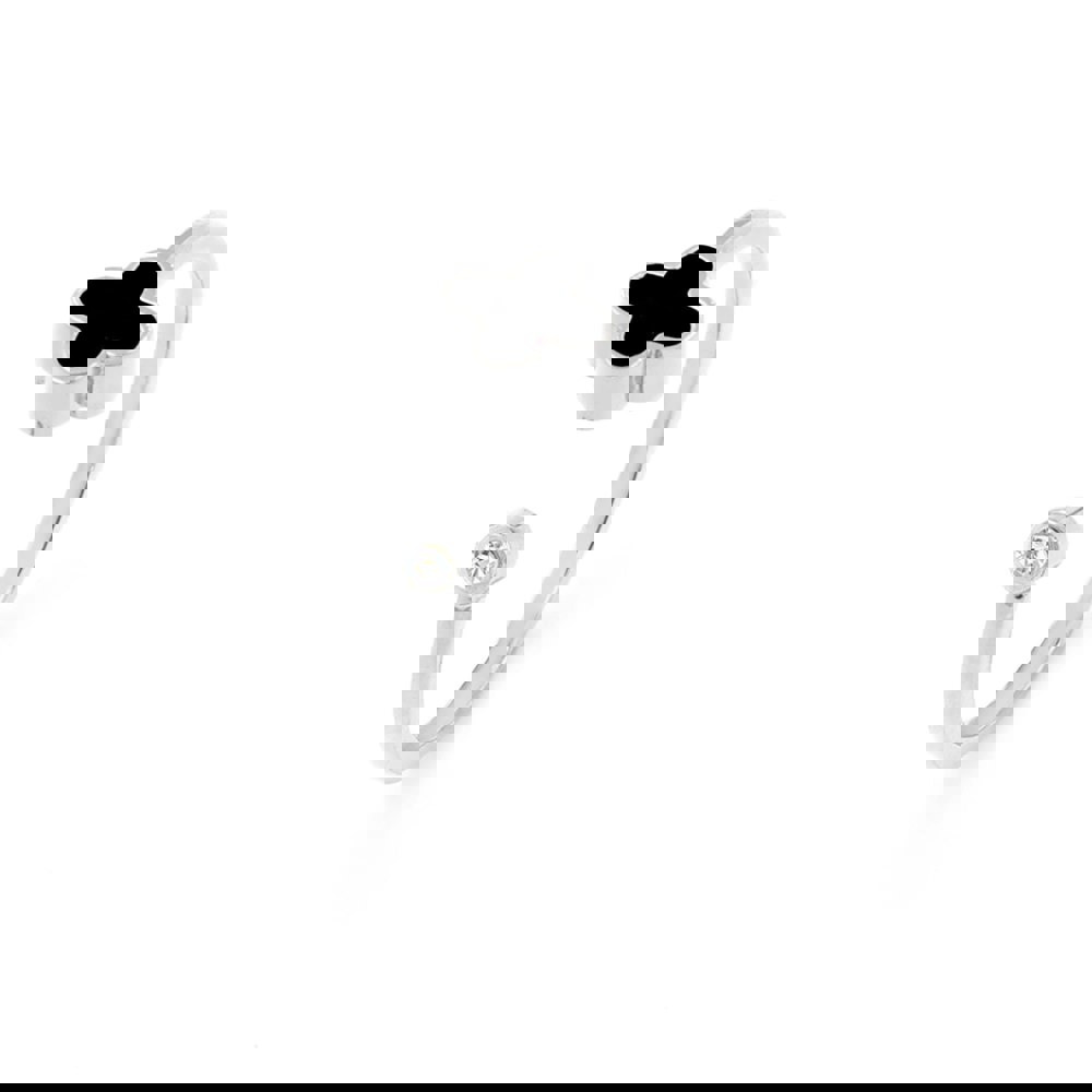 Add a touch of charm to your jewellery collection with the Graphite Crystal Clover Ring in Silver. Crafted from durable stainless steel with a sleek silver finish, this adjustable ring features a delicate clover design adorned with a graphite crystal at its centre.