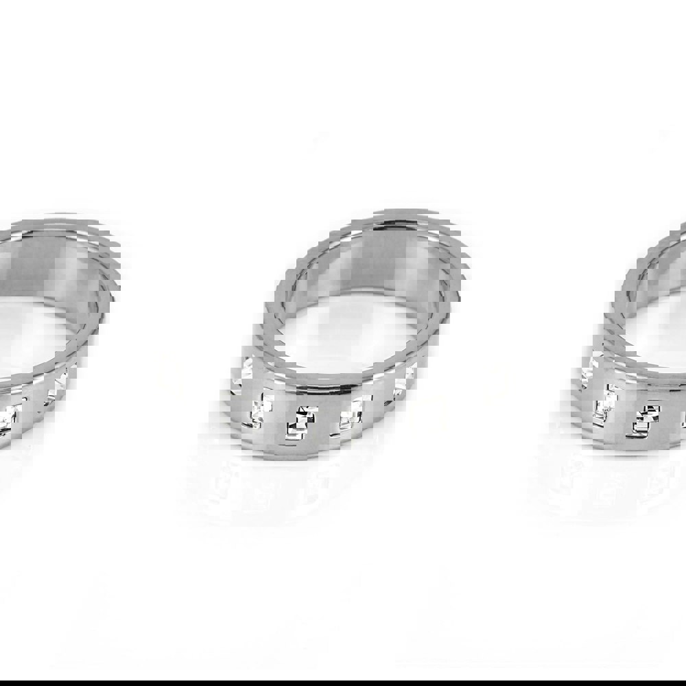 Featuring five clear square CZ stones embedded on one half of the band, this ring strikes the perfect balance between minimalism and sparkle. The polished silver finish enhances the modern yet timeless design, making it a versatile accessory for any jewellery collection. Available in small, medium, and large sizes, it offers a comfortable and tailored fit.