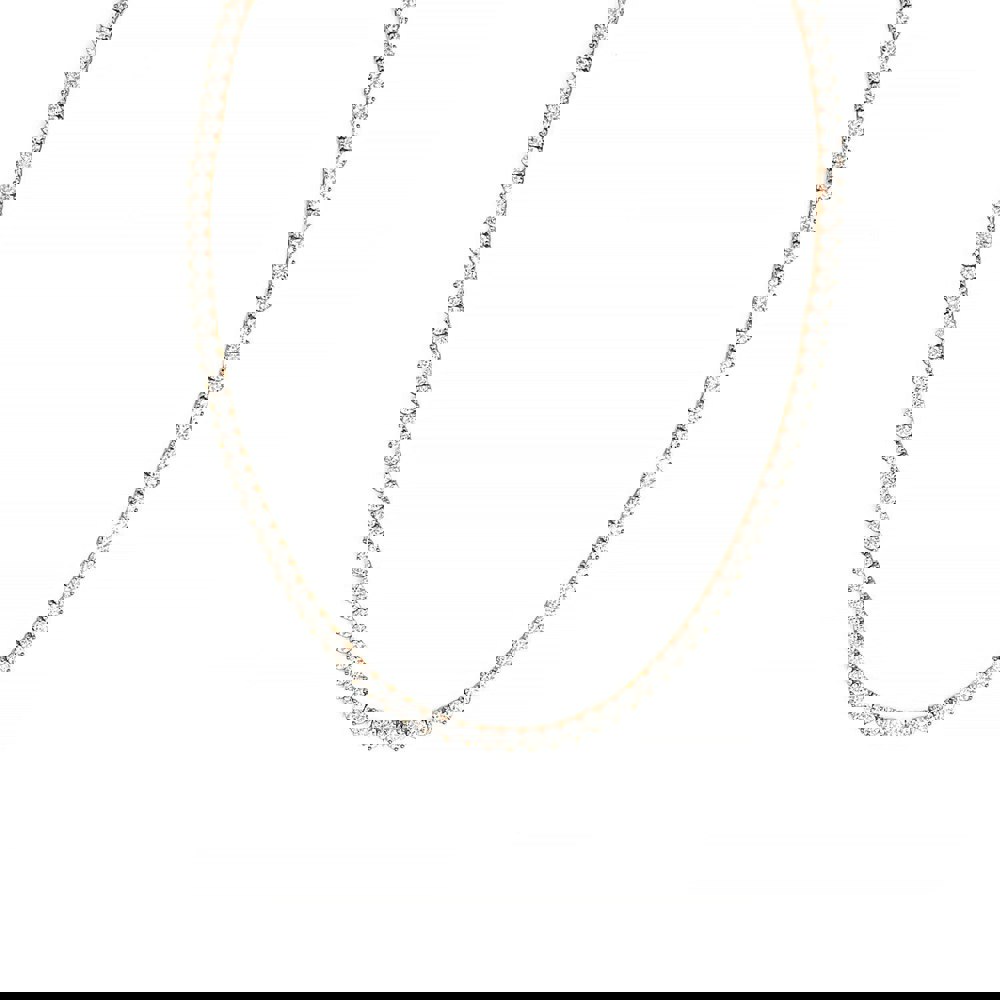 Soft, romantic, and endlessly radiant. Our Heart Tennis Necklace in Rose Gold is crafted from sterling silver and plated in luminous rose gold, offering a warm, feminine glow that complements every skin tone. Sparkling round cubic zirconia stones are set elegantly along the chain in a three-claw setting, creating the illusion of tiny hearts that catch the light with every movement.