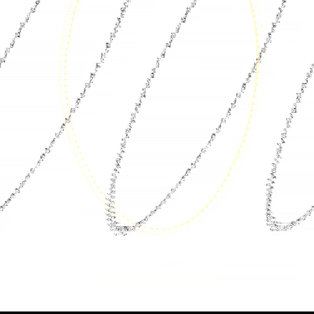A golden touch of romance and shine. Our Heart Tennis Necklace in Yellow Gold is expertly crafted from sterling silver plated in rich yellow gold, blending classic luxury with modern elegance. Each round cubic zirconia stone sparkles brilliantly along the chain, held in a three-claw setting that gives the illusion of delicate hearts - a subtle symbol of love in every detail.