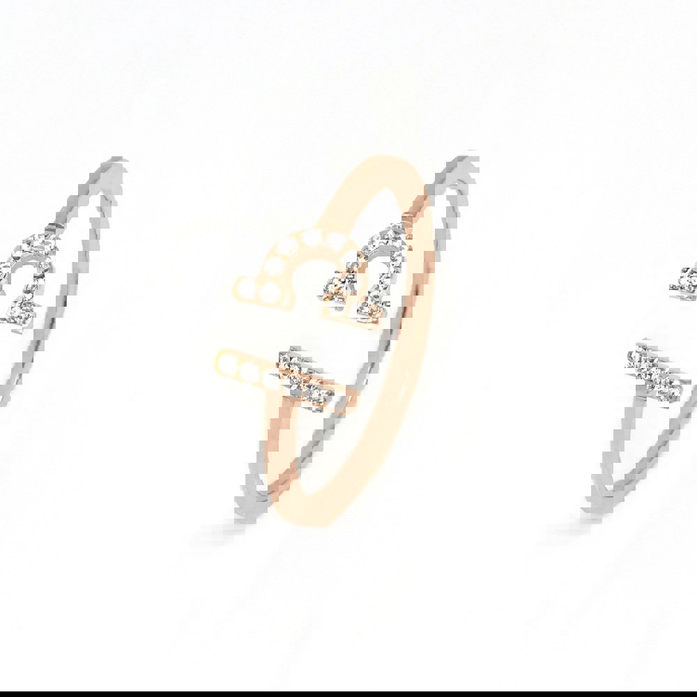This stunning Libra Ring in Rose Gold is crafted from stainless steel and features dazzling CZ feature stones on an adjustable ring.