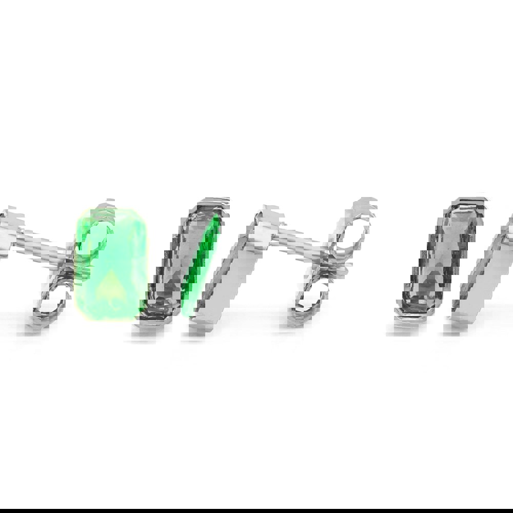 Add a touch of vibrant elegance with these May Emerald Birthstone Earrings. Crafted from Stainless Steel, these classic stud earrings feature a lush green emerald gemstone embedded within the earring, symbolizing renewal and love. A stunning accessory that embodies timeless beauty.