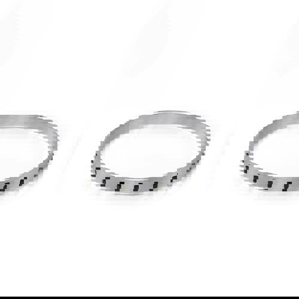 The minimalist stainless steel design is elevated by a series of square black CZ stones set around the bangle, offering a bold yet refined contrast. This versatile piece is perfect for enhancing both casual and formal attire, making it an essential addition to any man's accessory collection.